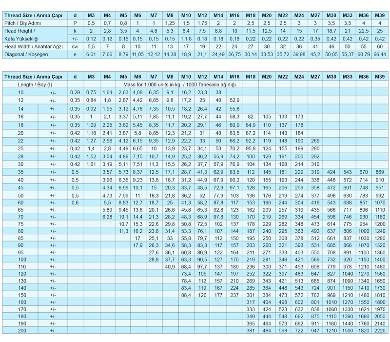 Altıköşe Başlı Tam Diş Cıvata / DIN 933 / ISO 4017 / TS EN 24017